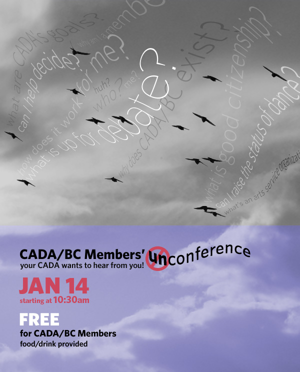 What does it mean to be part of a dance community? What is the most effective way to talk to each of the levels of government? We all struggle with the negotiation of looking out of our own careers while participating in a larger community. What does being a Member of an organization like CADA look like? How can we participate at our fullest?